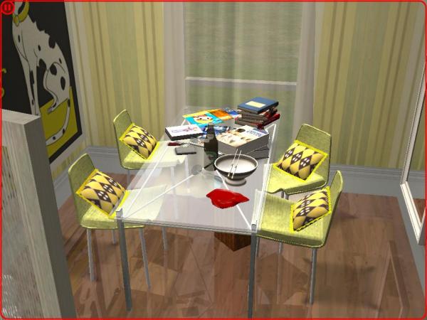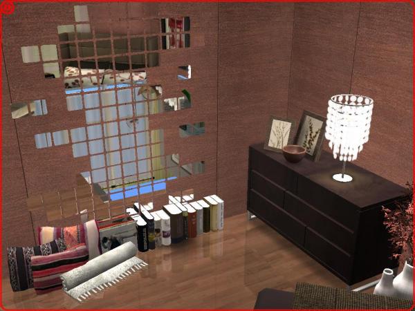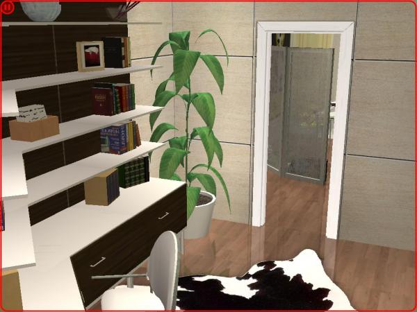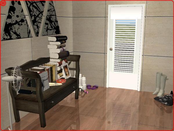 Zacytuję Ci fragment pewnej piosenki: "Teachers here teachers there Books and books they are everywhere." Nawet sa w łazience! (Simy załatwiają swoje potrzeby i przy okazji czytają, tak? :P) Bryła dziwna tak z leksza. Pustki w tym ogrodzie (jeśli tak to można nazwać) Wewnątrz całkiem przyjemnie. Z bardziej istotnych błędów to te książki, brak rolet w łazience przy takich oknach, w kuchni nie ma ani lodówki ani pieca, więc nie wiem jak Simy przyrządzają sobie jedzenie :| 7/10 (obniżyłam za te błędy, przede wszystkim za kuchnię) |
