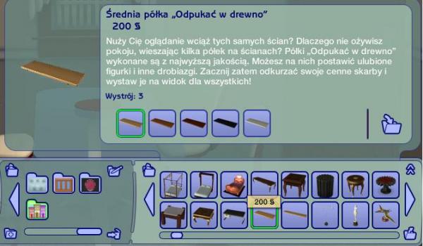 Wymagane:The Sims 2 Osiedlowe Życie 1.Wybieram dowolne okno. Ja wybrałam takie: http://forum.thesims.pl/picture.php?...pictureid=2760 2.Wciskam naraz Ctrl+Shift+C.Wpisuję kod move_objects on 3.Wchodzę w "Sortuj wg. stylu"->"The Sims 2 Osiedlowe Życie"-> i szukam obiektu "Średnia półka ,,Odpukać w drewno" lub "Średnia półka ,,Odpukać w drewno II". http://forum.thesims.pl/picture.php?...pictureid=2762 4.(Musi być nadal włączony kod) Wybieram półkę mniejszą lub większą (w zależności od szerokości okna) przybliżam półkę tak jakbym chciała powiesić obraz. 5.Przyciskam kwadratowy nawias ] (koniecznie ten, by półka "zjechała" na dół) 6.Zatwierdzam półkę tak jak chcę by wisiała: http://forum.thesims.pl/picture.php?...pictureid=2761 GOTOWE.! Dodatkowe Parapet mogę ozdobić, ale muszę mieć włączony kod move_objects on. http://forum.thesims.pl/picture.php?...pictureid=2758 Opcja działa też na mniejsze okna lecz wtedy muszę użyć drugiego kwadratowego nawiasu [ http://forum.thesims.pl/picture.php?...pictureid=2759 Poradnik zrobiłam z myślą o tych którzy jak ja, lubią ozdabiać okna ;) Pewnie niektórzy to wiedzieli, ale i są pewnie tacy którzy tego nie wiedzieli Nie życzę sobie kopiowania zdjęć i tekstu bez mojej wiedzy.!!! |