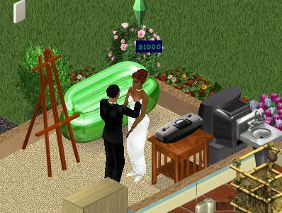 Odc. 2/2 Kilka miesięcy po opisanych wydarzeniach stała się rzecz straszna. Marek zniknął! Monika z Ewą musiały wyburzyć piętro i ciężko pracowały aby utrzymać dom i pracę... Co gorsza, stały się pośmiewiskiem całej okolicy! W najlepszym wypadku sąsiedzi się gapili (to była ich najlepsza rozrywka). https://forum.thesims.pl/picture.php...pictureid=5239 Pewnego razu plotki obiegły całą aleję simów. Podobno wprowadził się jakiś bogaty przedsiębiorca! Monika postanowiła go odwiedzić. Okazało się że to Marek! https://forum.thesims.pl/picture.php...pictureid=5238 Marek wszystko jej wytłumaczył. Nie wiedział, co mu odbiło, ale postanowił wyruszyć na wędrówkę. Znalazł darmowy kurs komputera, a następnie zatrudnił się w przedsiębiorstwie informatycznym. Zrobił tam karierę i zbił majątek na giełdzie. Teraz, jako znany inwestor wrócił na Aleję Simów. Gdy skończył, szepnął jej na ucho „kocham cię”. https://forum.thesims.pl/picture.php...pictureid=5241 Niestety okazało się, że w międzyczasie Monika wzięła rozwód (jakoś to prawo dopuściło ;) ). Postanowili wziąć ślub. Monika nie chciała rozstawać się z przyjaciółką z którą dzieliła troski życia, jednak obiecały że mimo pracy będą się często odwiedzać. https://forum.thesims.pl/picture.php...pictureid=5242 Później urządzili wesele. Jako ostatnia została Ewa. Monika się z nią pożegnała i... Zaczęła nowe życie! https://forum.thesims.pl/picture.php...pictureid=5243 |